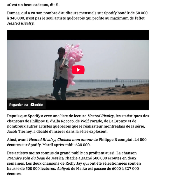 EXPLOSION DES ÉCOUTES SUR SPOTIFY: UN EFFET « HEATED RIVALRY » POUR DES CHANSONS QUÉBÉCOISES